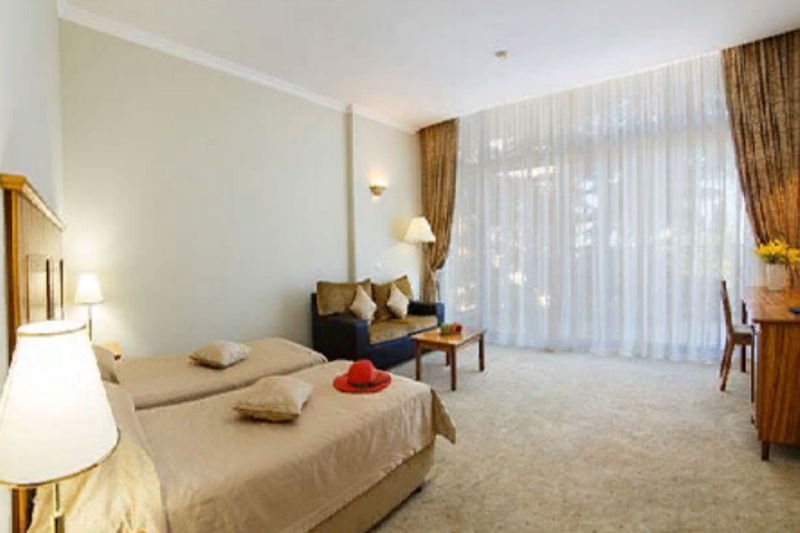 Оснащение 2-спальная кровать, гостиная, спальня, диван, 2 балкона, прикров. тумбы, шкаф, стул, стол, TВ, телефон, сейф, мини-бар, сушилка для белья, фен, ванная, косметич. принадлежности, панорамный вид на море