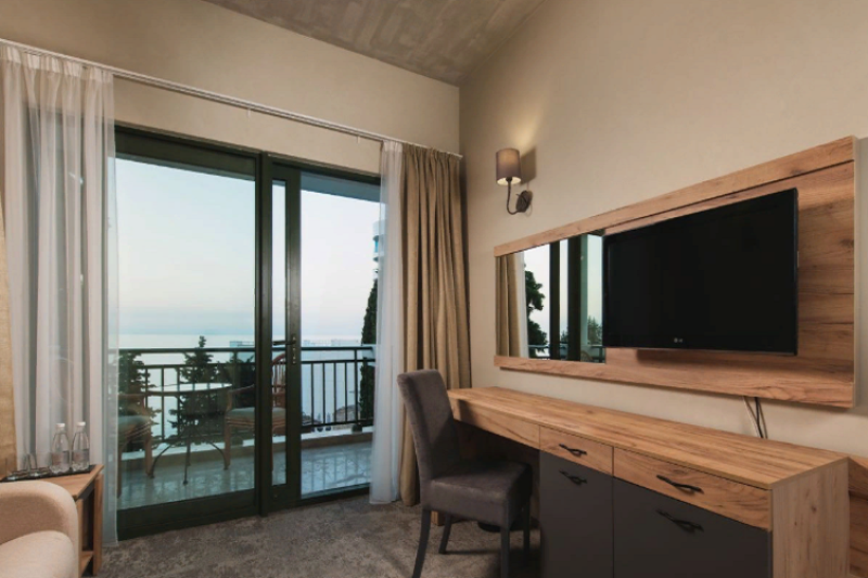 Оснащение 1 двуспальная/2 раздельные кровати, кресло, балкон, прикров. тумбы, шкаф, стул, журнальный столик, стол, TВ, телефон, сейф, мини-бар, сушилка для белья, фен, ванная с душ. кабиной, косметич. принадлежности