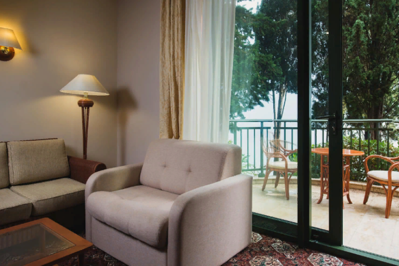 Оснащение 2-спальная кровать, балкон, прикров. тумбы, шкаф, стул, журнальный столик, стол, TВ, DVD-плеер, телефон, сейф, мини-бар, фен, ванная, чайный набор, красивый вид на море