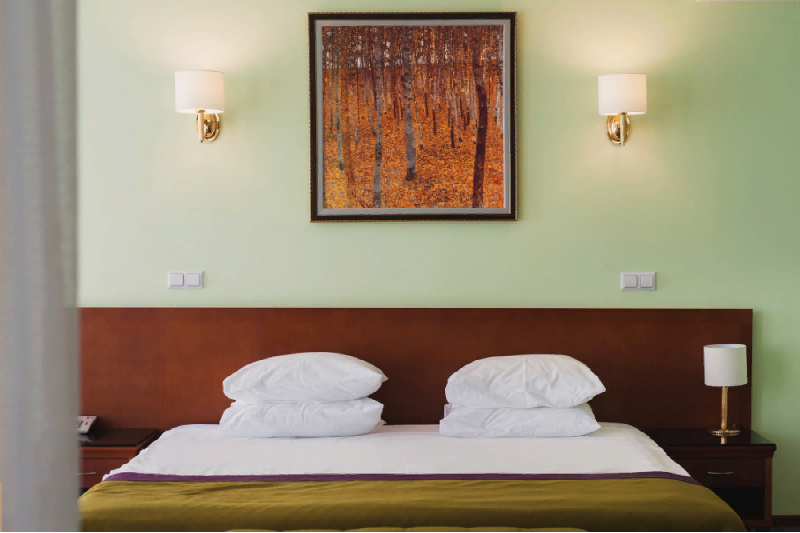 Оснащение 1 двуспальная/2 раздельные кровати, кресло, прикров. тумбы, шкаф, стул, журнальный столик, стол, TВ, телефон, сейф, мини-бар, фен, холодильник, ванная с душем, чайный набор