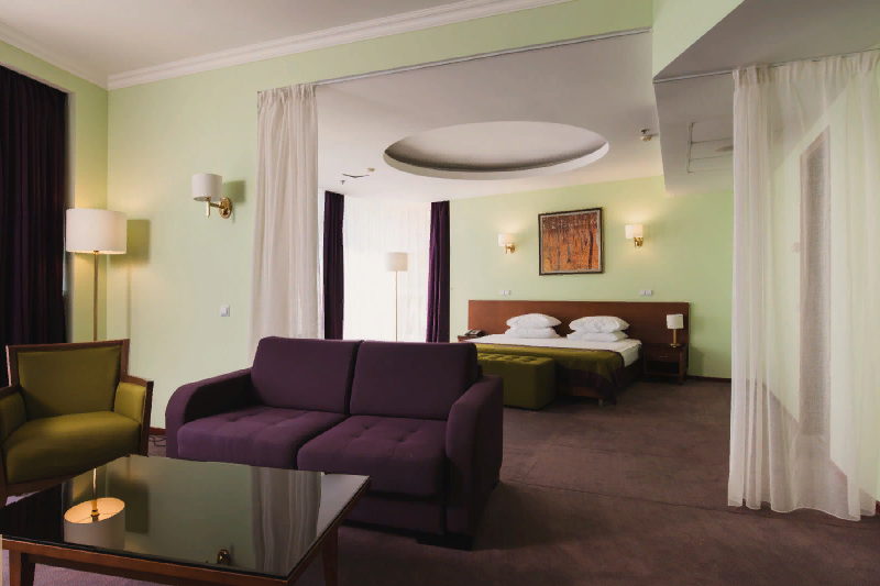 Оснащение 2-спальная кровать, спальня, гостиная, диван, 2 балкона, шкаф, стул, журнальный столик, стол, TВ, телефон, сейф, муз. центр, мини-бар, сушилка д/белья, фен, ванная, косметич. принадлежности, чайный набор