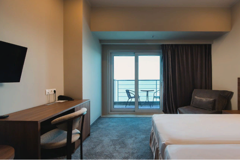 Оснащение 2-спальная кровать, балкон, прикров. тумбы, шкаф, стул, журнальный столик, стол, TВ, DVD-плеер, телефон, сейф, мини-бар, фен, ванная, чайный набор, красивый вид на море