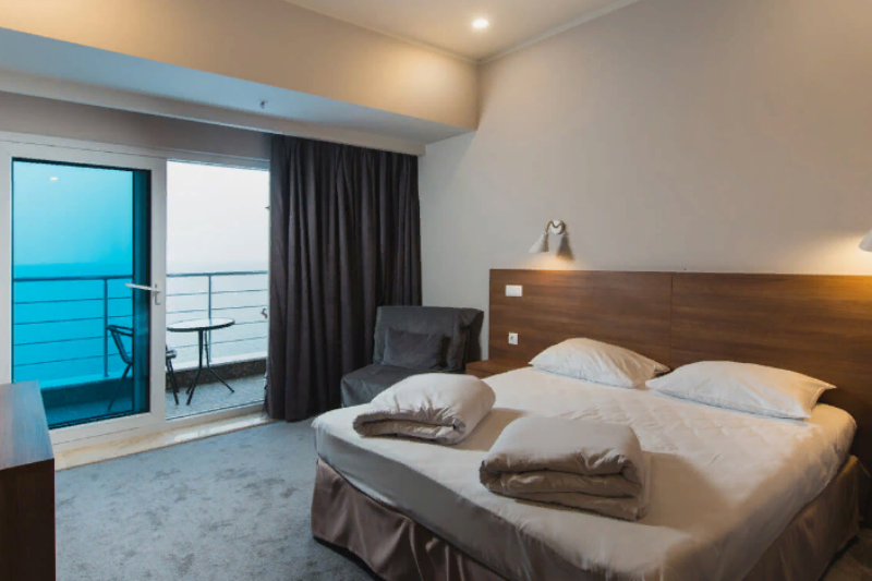 Оснащение 2-спальная кровать, прикров. тумбы, шкаф, стул, стол, TВ, телефон, сейф, мини-бар, фен, ванная с окном, чайный набор, балкон, красивый вид на парк/море