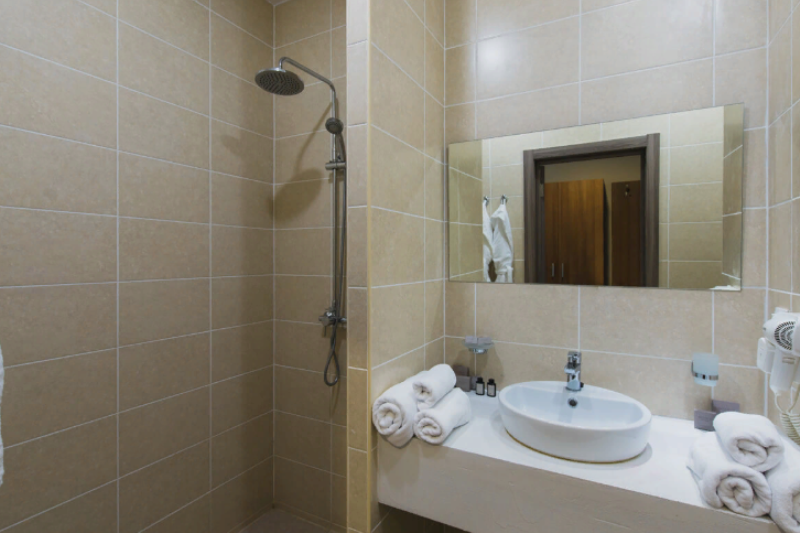 Оснащение 2-спальная кровать, прикров. тумбы и бра, шкаф, кресло, стул, полка для багажа, вешалка, журнальный столик, стол, TВ, телефон, сейф, мини-бар, сушилка для белья, фен, ванная с душем