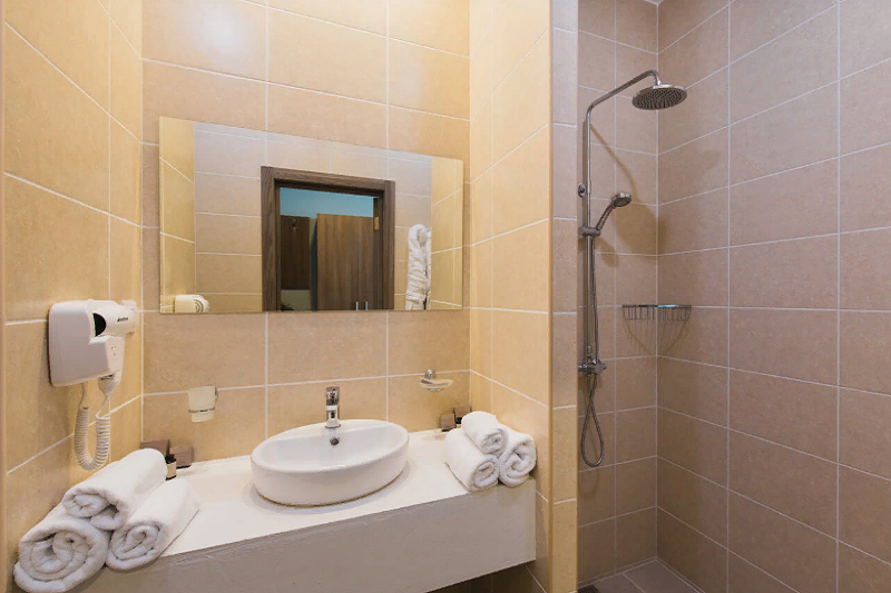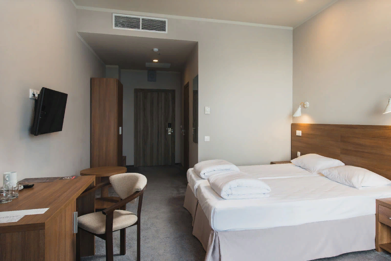 Оснащение 1 двуспальная/2 раздельные кровати, кресло, балкон, прикров. тумбы, шкаф, стул, журнальный столик, стол, TВ, телефон, сейф, мини-бар, сушилка для белья, фен, ванная с душ. кабиной, косметич. принадлежности